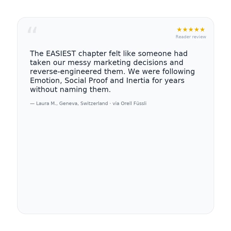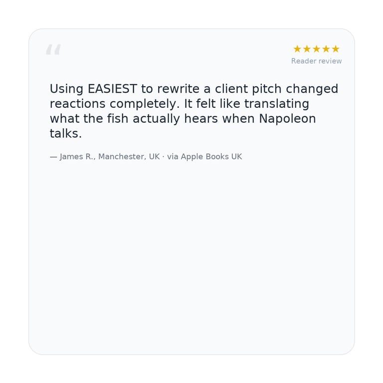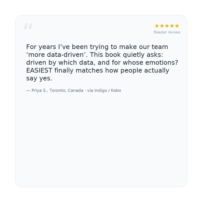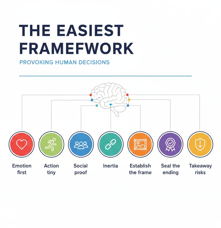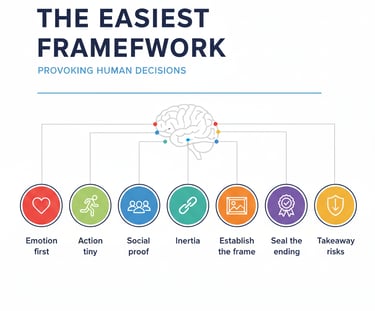 Seven behavioral principles that work with human psychology instead of fighting it. It's called E.A.S.I.E.S.T. because it's the easiest way to trigger decisions—easier than building perfect logic that nobody acts on. Each principle comes with practical applications and a Monday Morning Test so you can try it immediately. Emotion first, not last. Tiny actions, not grand commitments. Social proof close enough to believe. The framework isn't theory—it's what actually works when spreadsheets don't.
